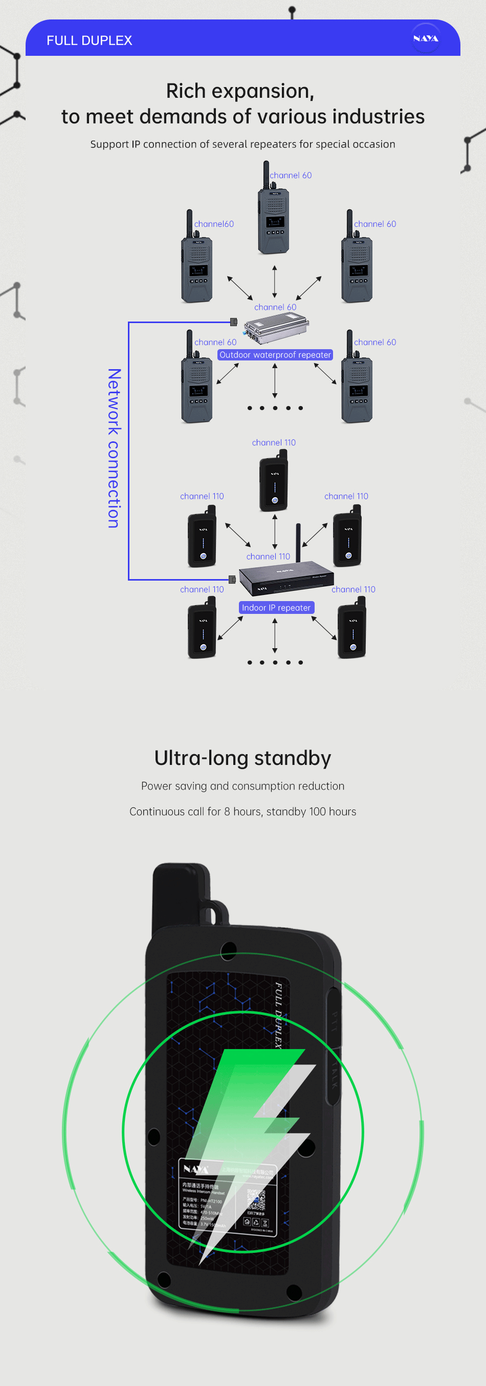 NAYA PNI-HT2100 Full Duplex Walkie Talkie Wireless Intercom System Transmission