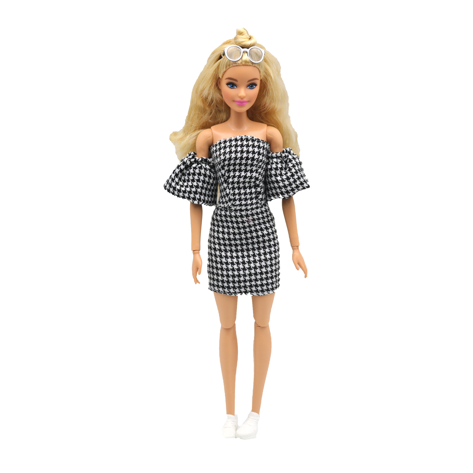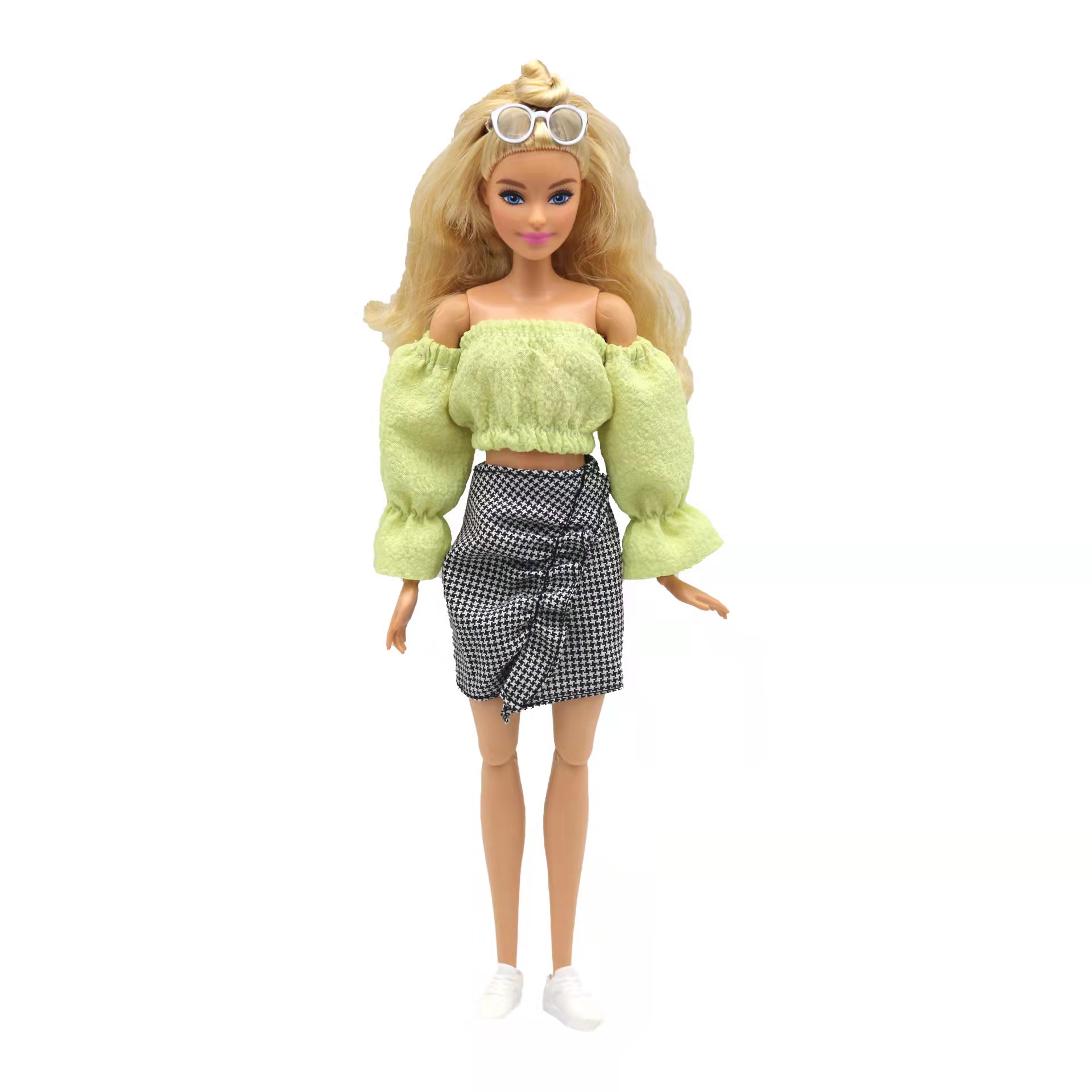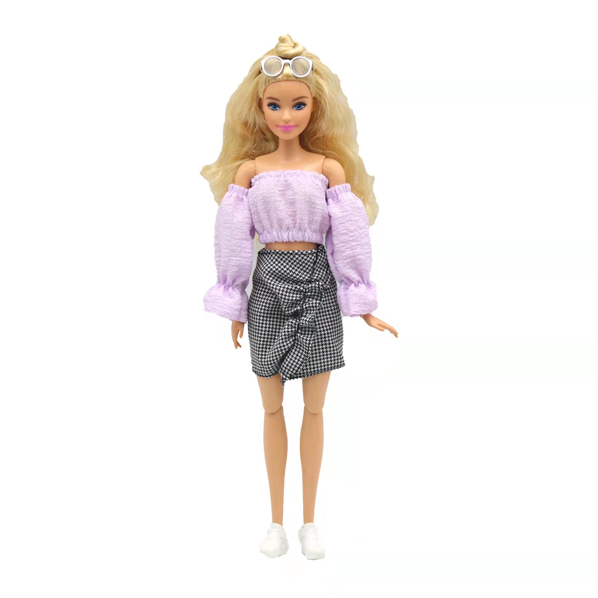 30cm Doll Outfits For Barbie Clothes Set Puff Sleeve Shirt Skirt Shorts Houndstooth Plaid Clothes For Barbie Accessories 1/6 Toy