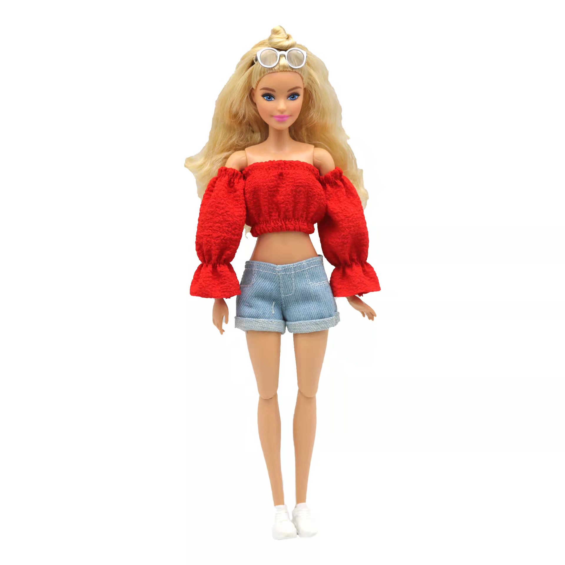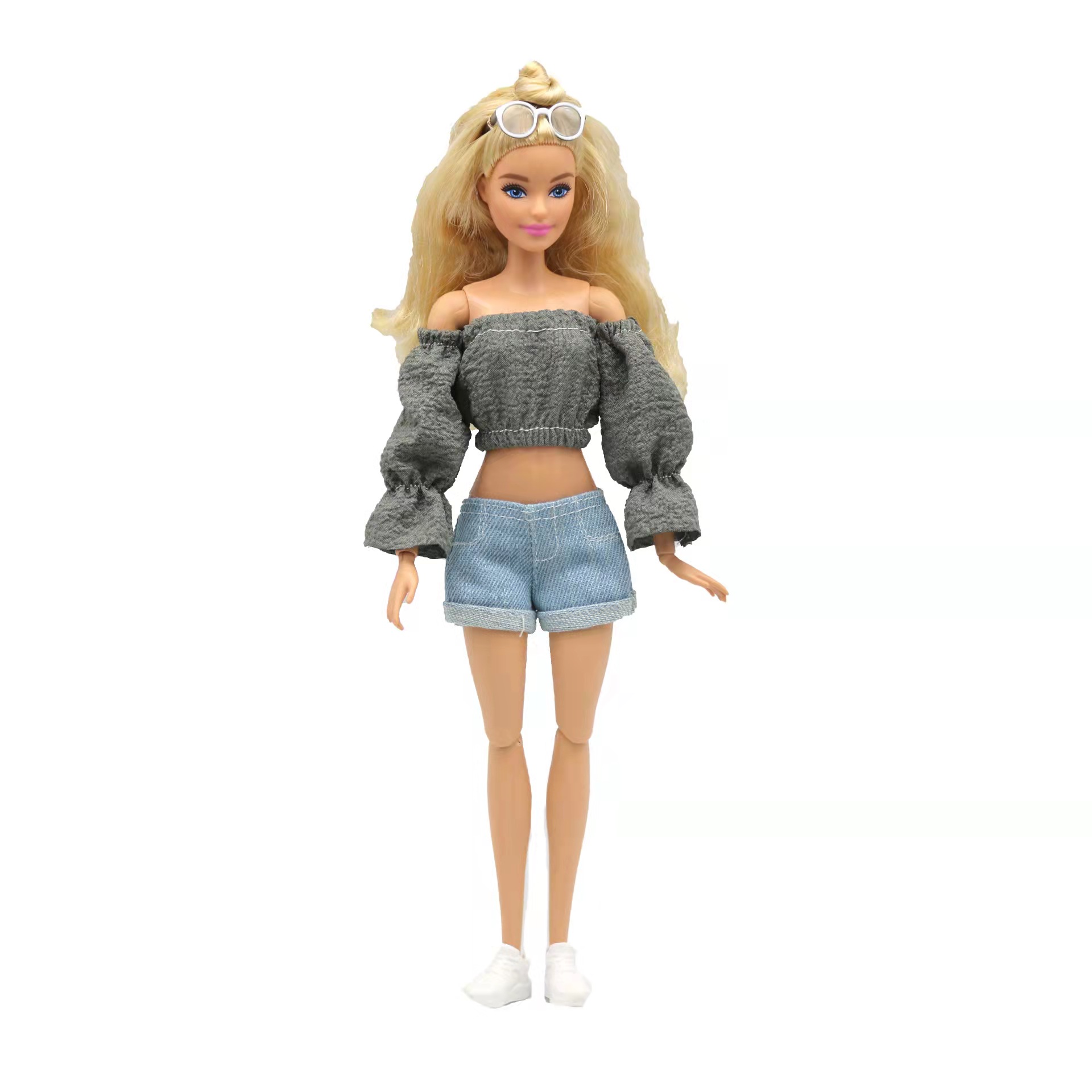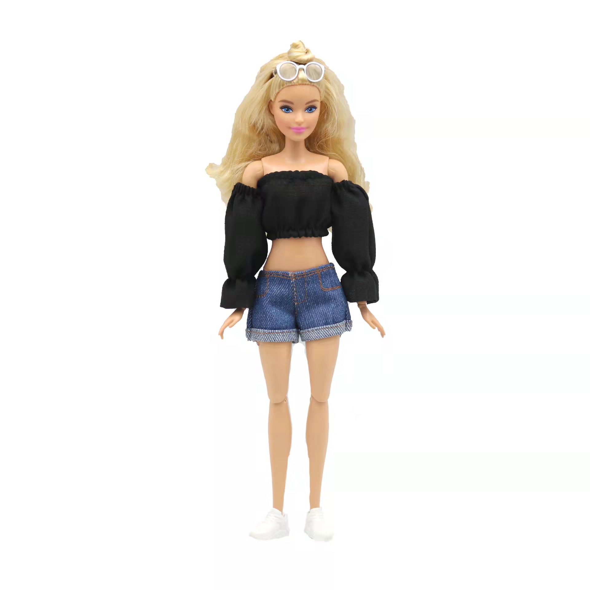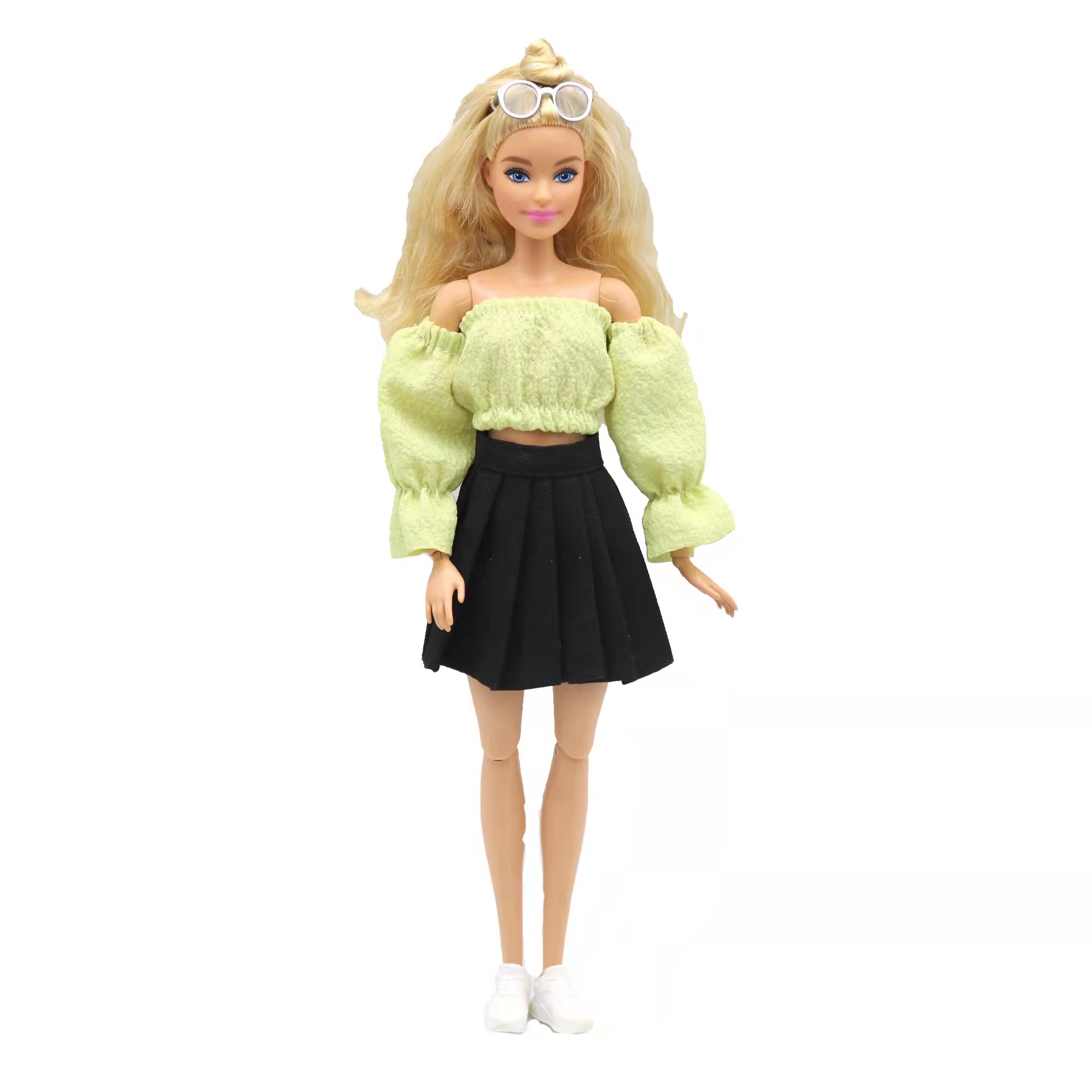 30cm Doll Outfits For Barbie Clothes Set Puff Sleeve Shirt Skirt Shorts Houndstooth Plaid Clothes For Barbie Accessories 1/6 Toy