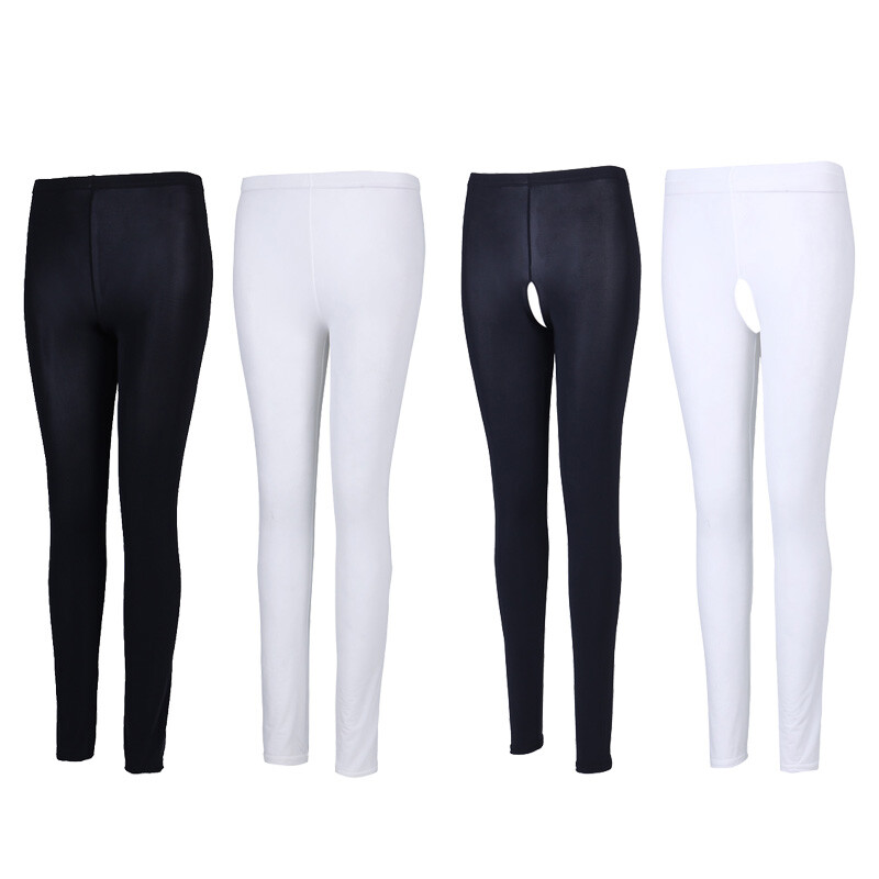 Design with crotchless, glossy surface and slim fit, high waist with elastic waistband.