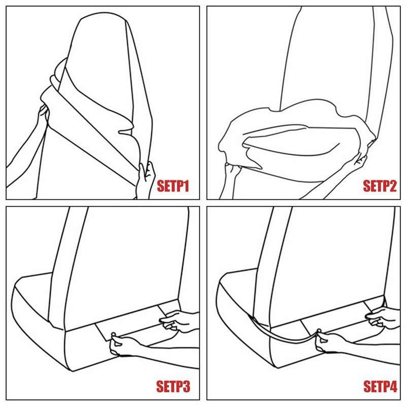 with built-in or adjustable headrests. FITTING INSTRUCTION: 1, Pull seat cover over top of seat , Adjust and smooth to fit . 2,Pull the flap tightly through the car seat crevice. 3, Pull bottom of seat cover over the bottom of seat.