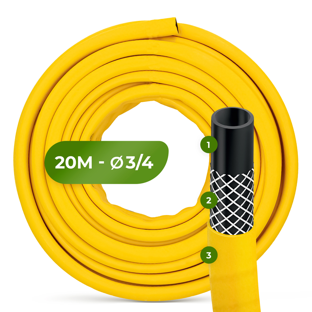 3-Lagig Gartenschlauch 3/4" 20m Wasserschlauch UV-Beständig Bewässerung Schlauch