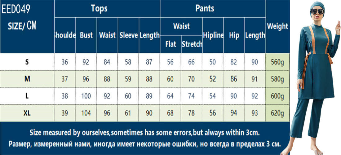 Package include: Swimwear 3pcs (Tops+Pant+Cap)