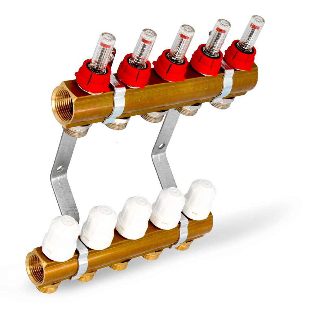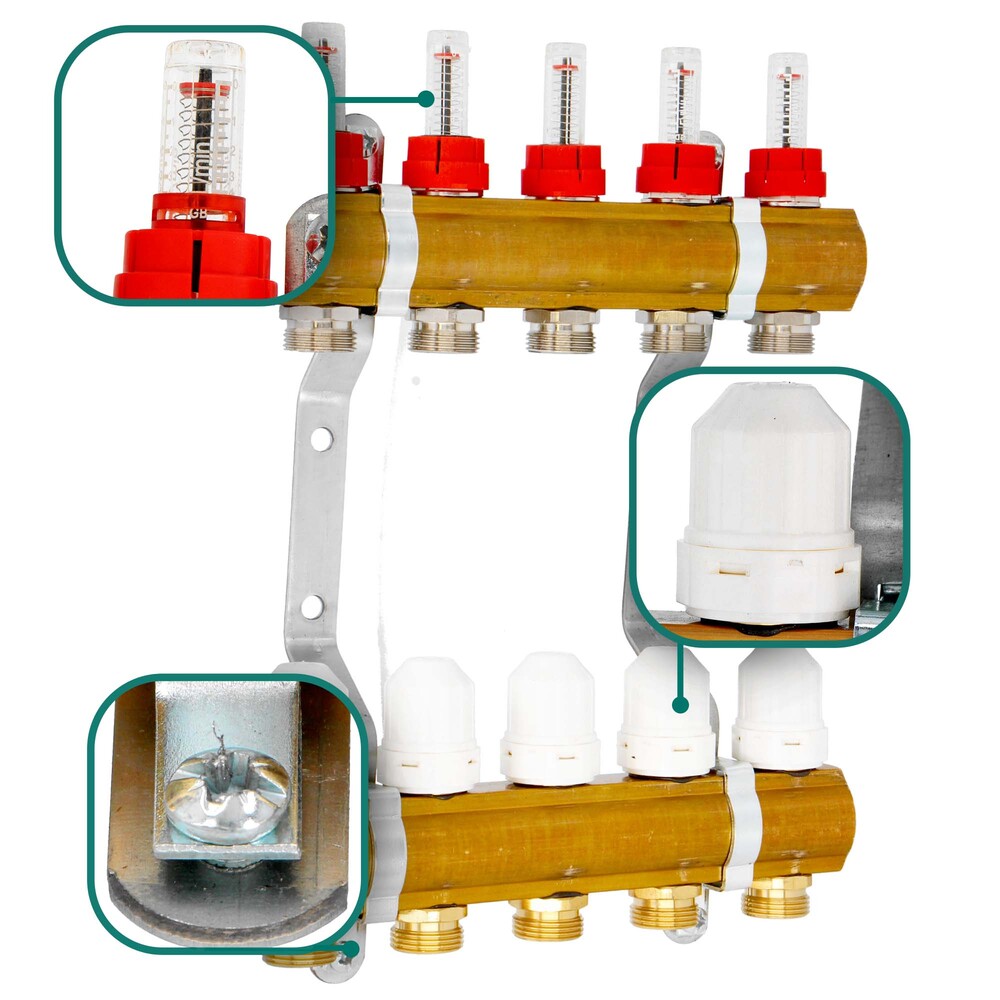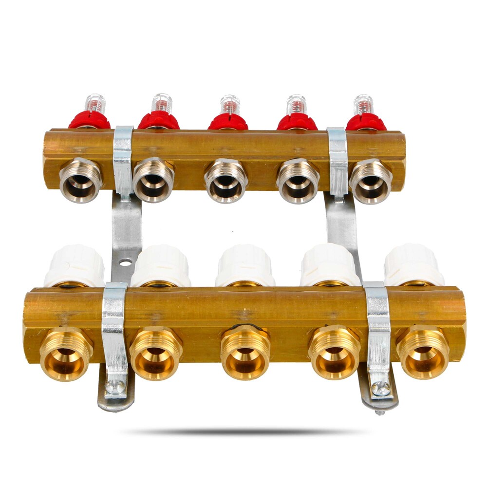 Fußbodenheizungsverteiler Messing 5-Wege-Rohranschlüsse Abschnitte Vormontiert
