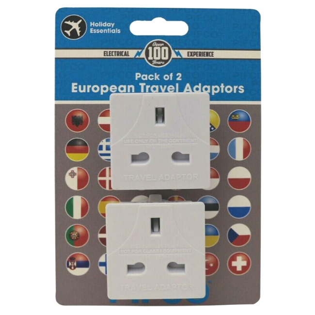 UK TO EU TRAVEL ADAPTERS TO FIT EUROPEAN PLUG MAX 10 AMP 240V HOLIDAY - 2 PACK