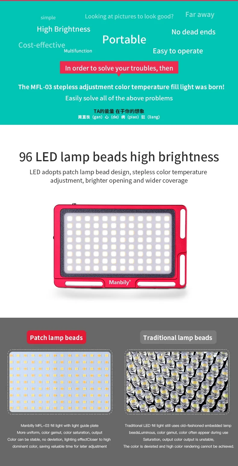New Manbily Mini LED Video Camera Light Dimmable 96 LED Photographic 3000-6500K Lighting Lamp for DSLR Canon Nikon Pentax ( MFL-03)