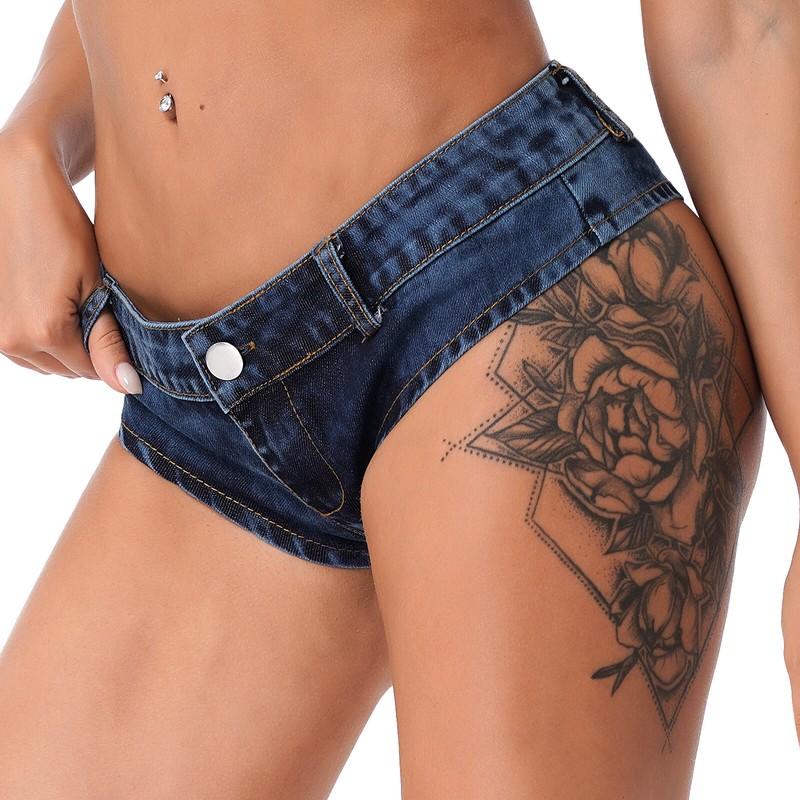 Women Low Waist Mini Denim Hot Pants Night Club Bar Party Dance Performance Booty Shorts.