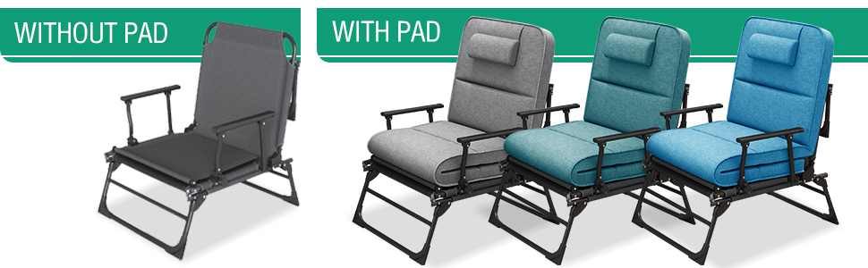 4 POSITIONS ADJUSTABLEThe adults reclining folding chaise is designed with 4 positions adjustable locking system, which allows you to adjust it to a comfortable position according to your needs. You can sit up, recline or lay flat. |