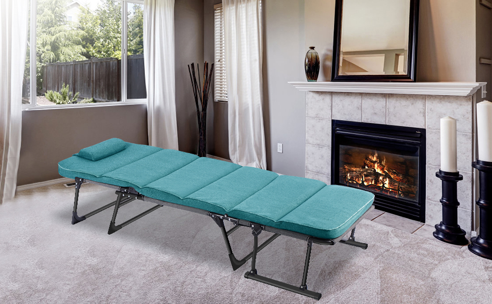 WIDE RANGE OF USES: This cot bed not only as camping, patio and pool furniture, but also in beauty salons and reflexology offices. The portable cot is perfect to be used at the park, beach, backyard, garden, campsite or other outdoor places. It can be used as a bed for your guest as well. Super convenient!