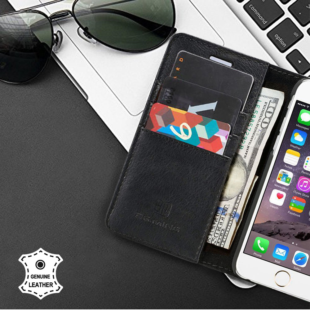 - 100% GENUINE LEATHER - Branded Apple iPhone & Samsung wallet case are precision made from premium genuine cowhide leather. These hides are selected for quality, strength, character and grain. They look stylish and feel nature and soft