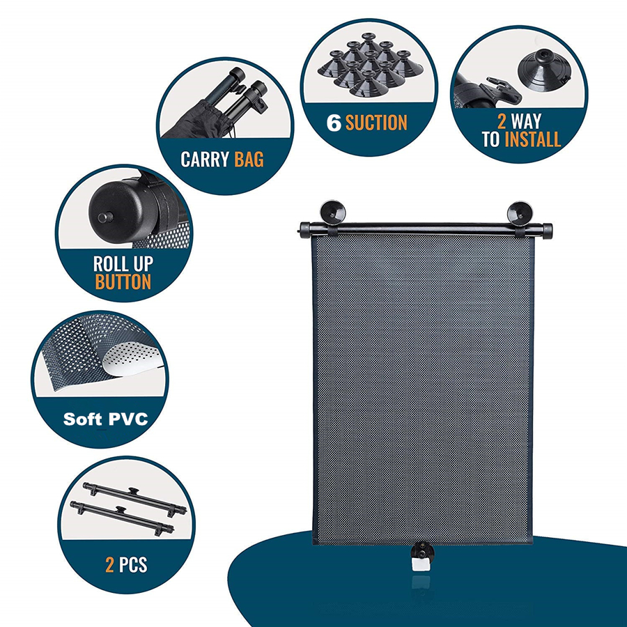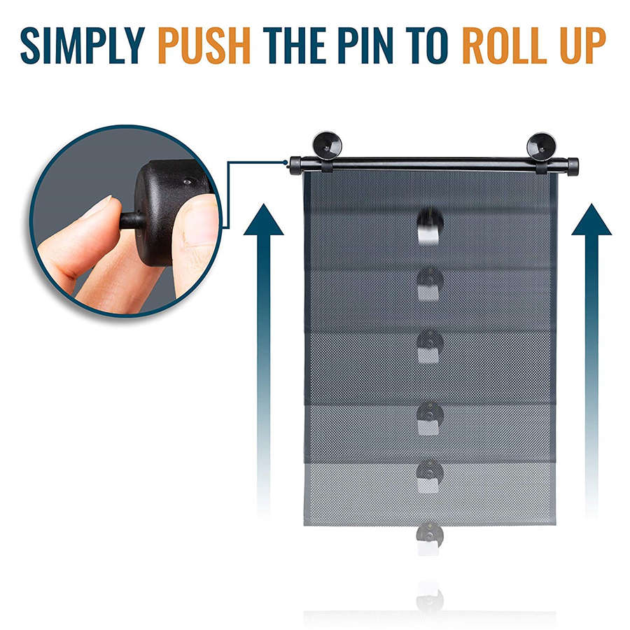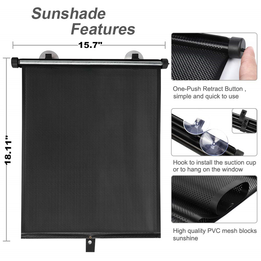 - Adjustable Size --Retractable roller ,passenger can decide how much or how little shade they need.Perfect to fit most car .With One-Push Retract Button.This is a simple sunshade that can be easily used even for young kids.