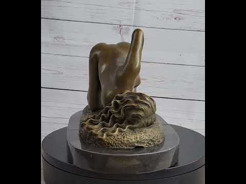 This exquisite sculpture captures the essence of sensual beauty with a nude sexy girl depicted in a graceful and alluring pose. The artist has skillfully crafted the piece to highlight the natural curves and elegance of the female form, making it a captivating addition to any decor. The rich brown patina enhances the sculpture’s intricate details, creating a stunning contrast against the black marble base.