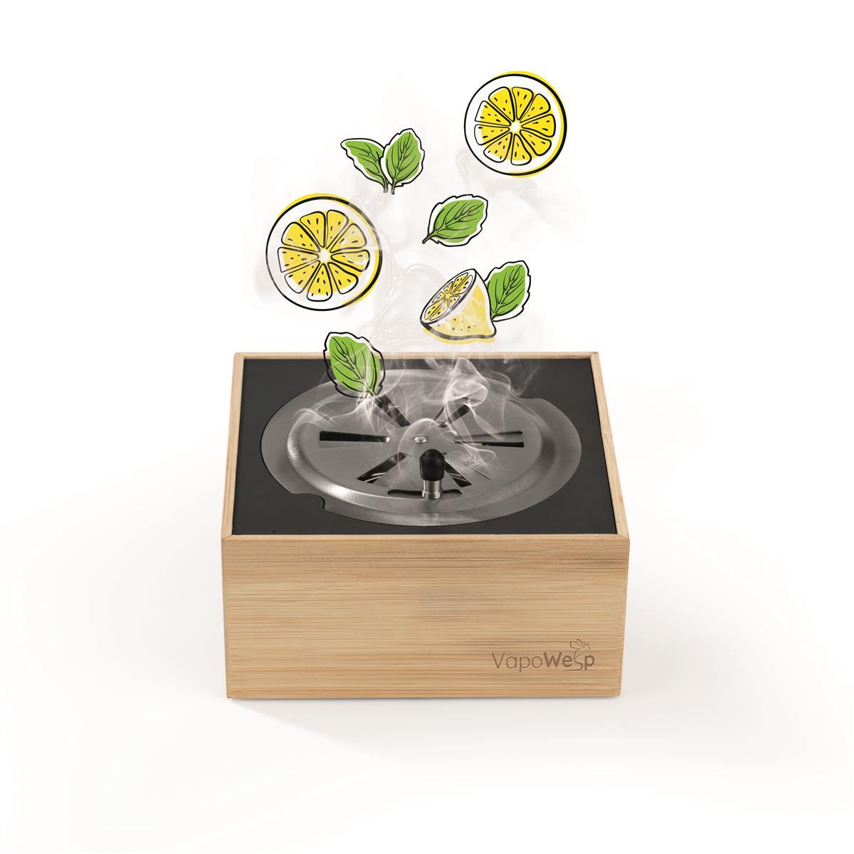 Durch die speziellen, natürlich duftenden VapoWesp Kräutermischungen wird das glimmende Kaffeepulver, welches normalerweise nach einiger Zeit unangenehm riecht, angenehm aromatisiert. So kannst du die Zeit im Freien entspannt genießen - mit zartem Räucher-Kräuterduft in der Nase!