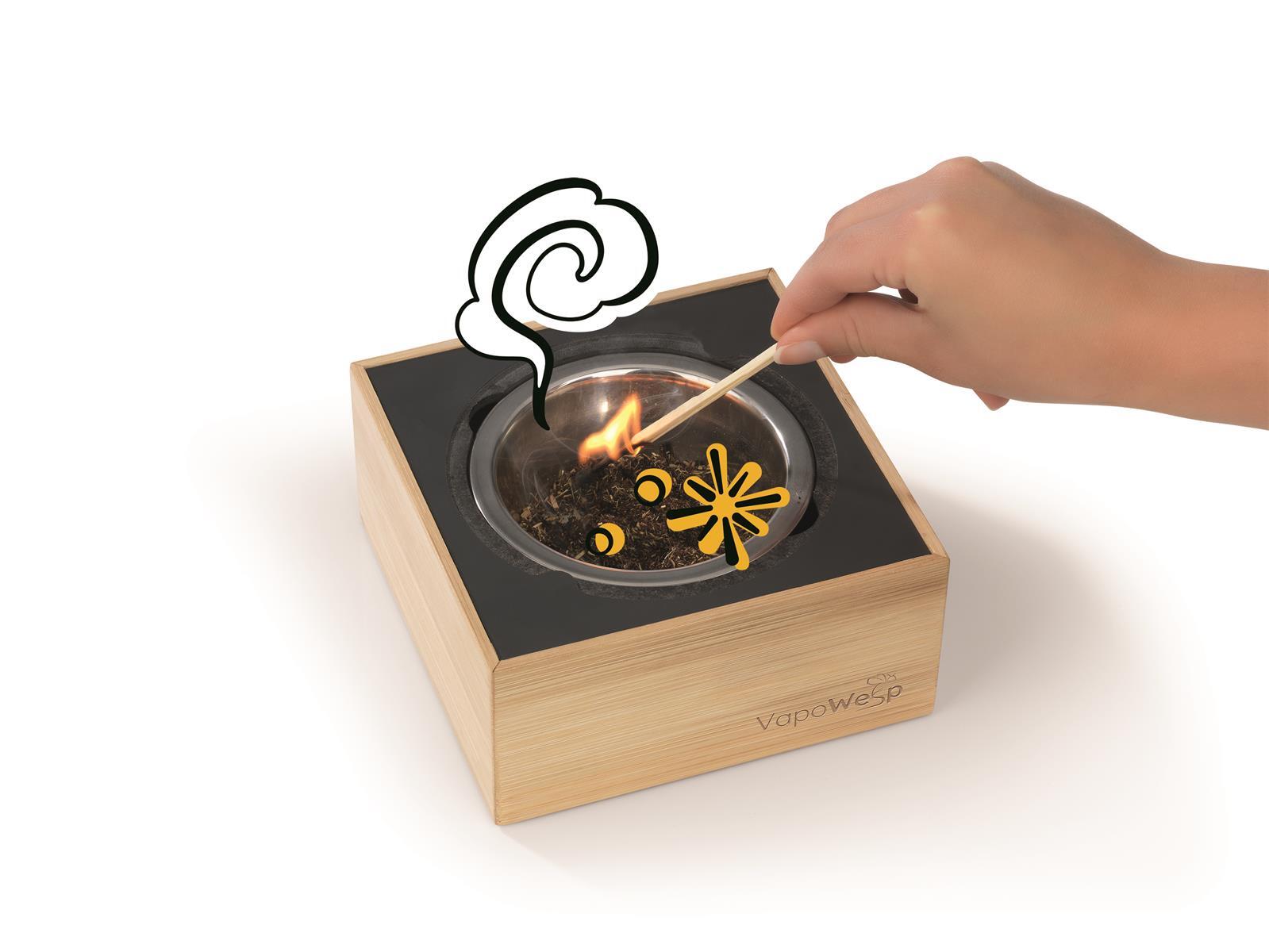 Diese Kräutermischung ist speziell für die Anwendung mit deiner VapoWesp Räucherbox* hergestellt worden. Einfach das VapoPulver mit gemahlenem Kaffee (nicht im Lieferumfang enthalten) in die Schale der Räucherbox geben und an mehreren Stellen anzünden, bis die Mischung anfängt zu glimmen.