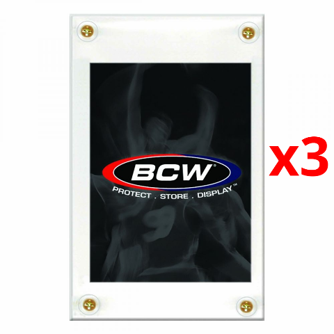 The BCW 4 Card Screwdown Holder is made of high quality, crystal clear polystyrene and measures ¼ inch thick.