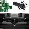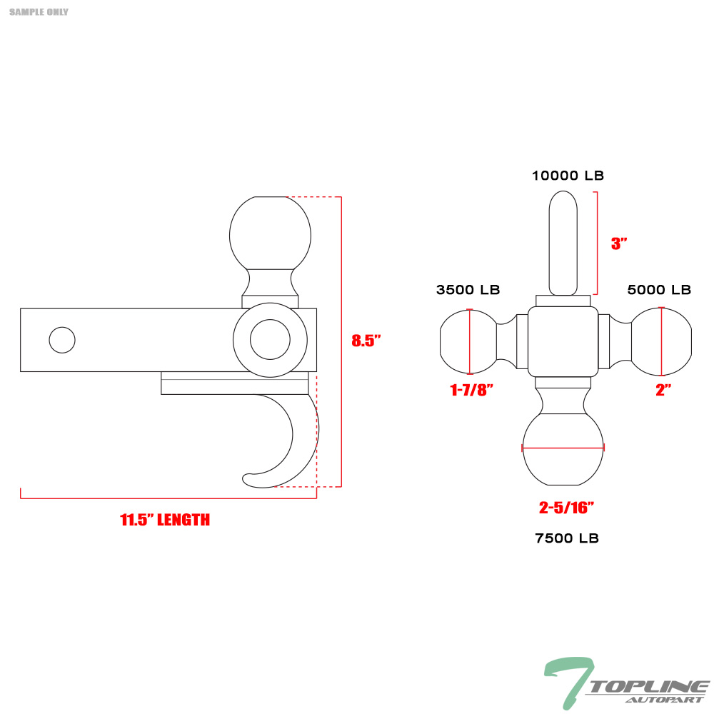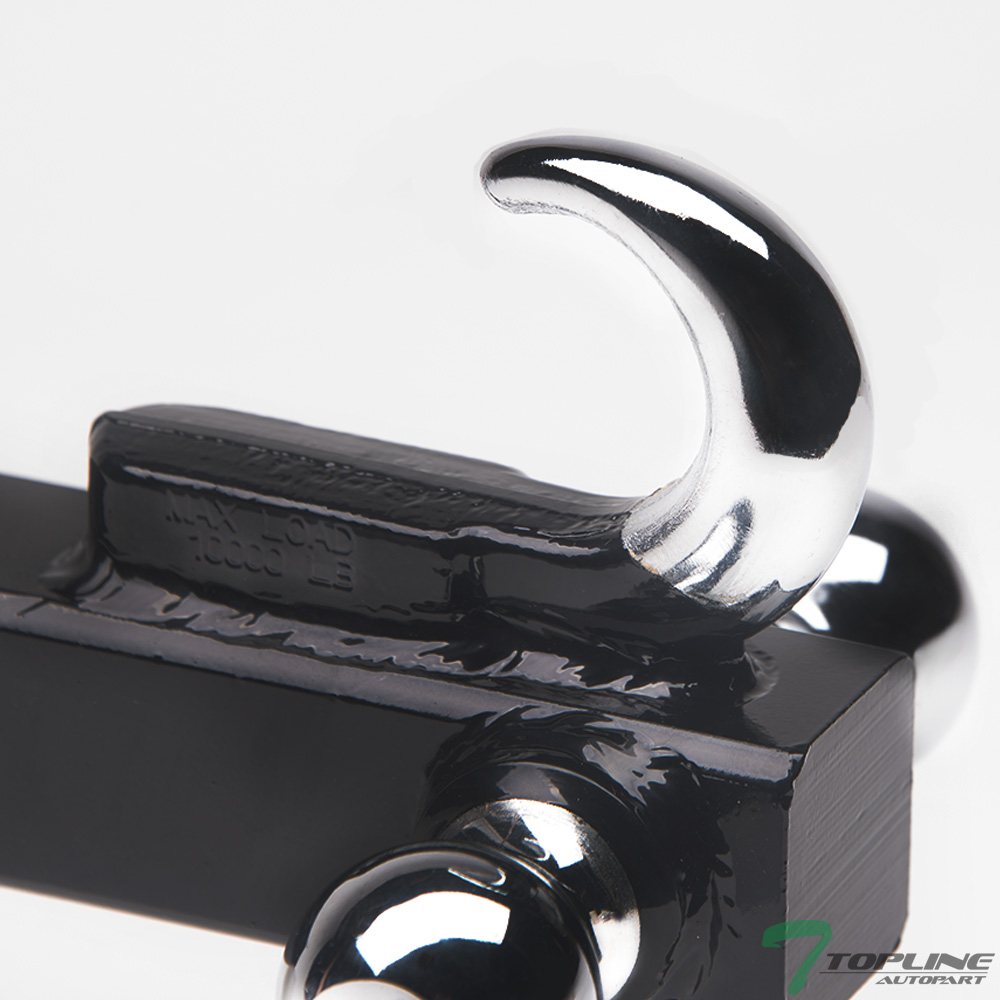 3 Size In One Tri-Ball Mount With Trailer Hook Receiver Size: 2" Receiver Tube Trailer Ball Diameter - 1.87", 2" & 2.31" Capacity: 3500 lbs, 5000 lbs & 7500 lbs High Quality Steel & Made Ready For Heavy Duty Towing Work Come With Hitch & Clip For Secure Mounting In Receiver Tube Trailer Ball Features A polished Chrome Plated Finish