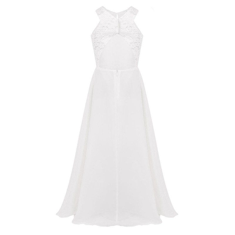 Hidden back hip zipper closure. 2 layers dress, top chiffon layer with 1 lining. Beautiful and stylish dress for your girl.