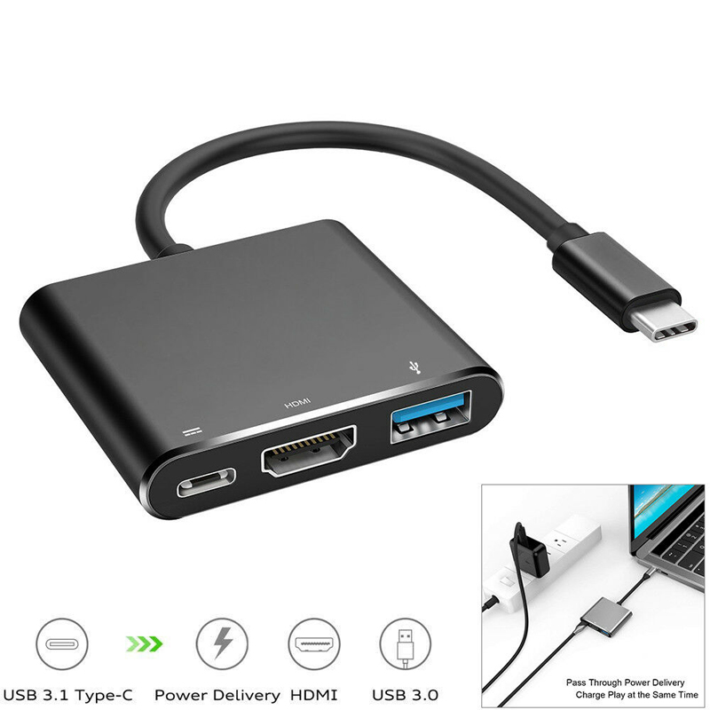 Type C USB 3.1 to USB-C 4K HDMI USB 3.0 Adapter Cable 3 in 1 Hub For Macbook TV
