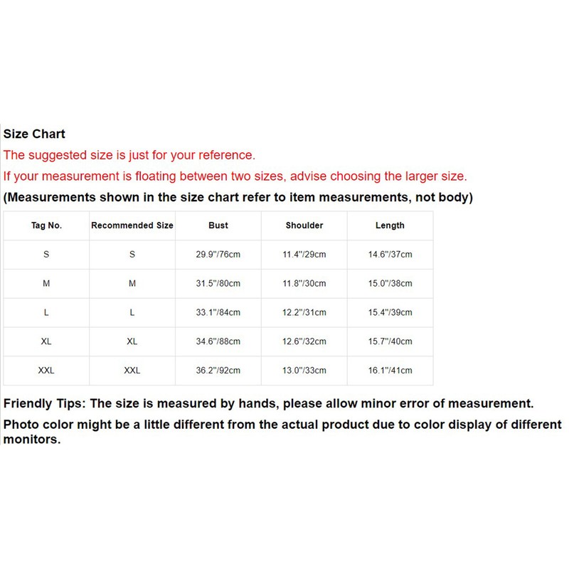 | Tag No. | Recommended Size | Bust | Shoulder | Length |