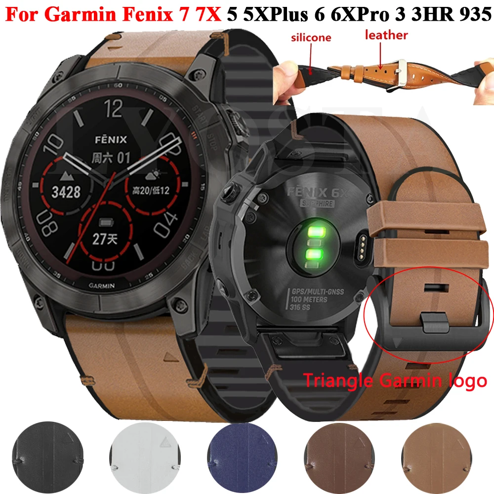 22 26mm Quickfit Watch Strap For Garmin Fenix 6 6X Pro 5X 5 Plus 945 935 3HR S60 Genuine Leather Band Silicone Watch Wristband