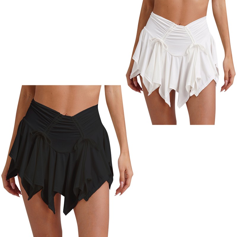 Featuring with see-through mesh, elastic waistband for comfy fit, mini length.