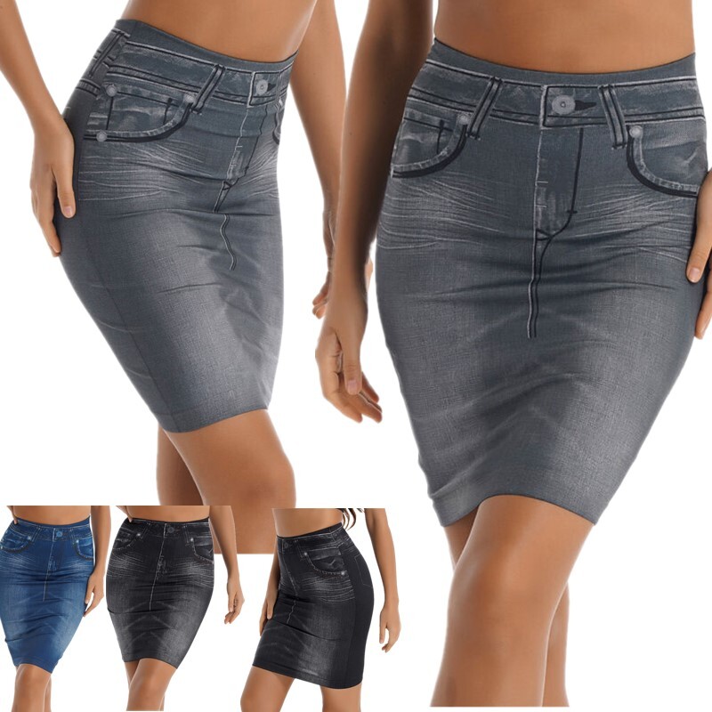 Womens Glossy Solid Color Pencil Skirt Casual High Waist Elastic Waistband Miniskirt.