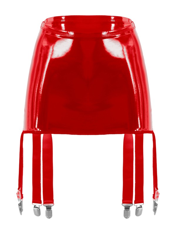 Womens Wet Look Patent Leather Garter Belt High Waist Suspenders with Six Metal Buckle Clips.