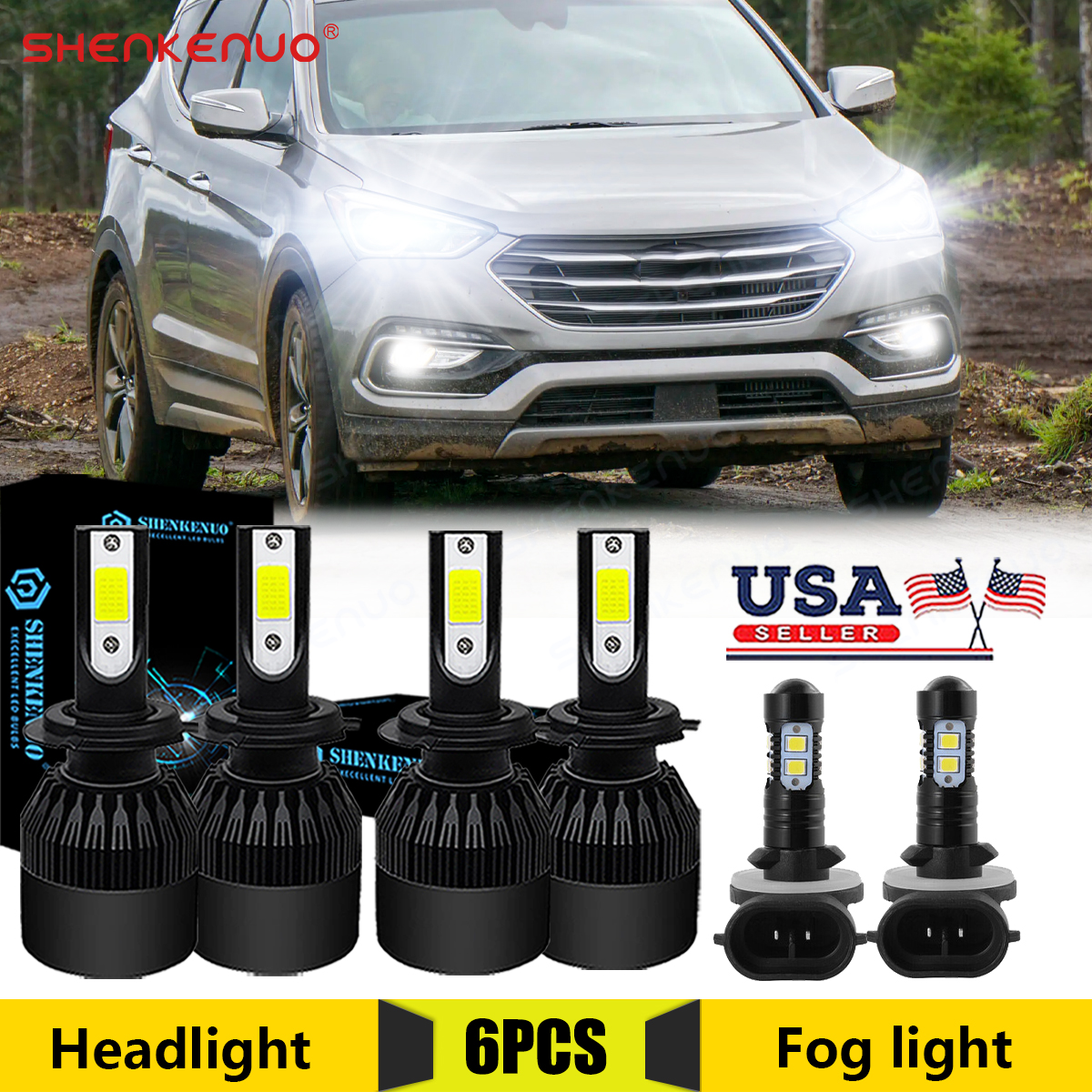 For Hyundai Santa Fe 2007-2009 2012 LED Headlight High Low Beam Fog Light Bulbs