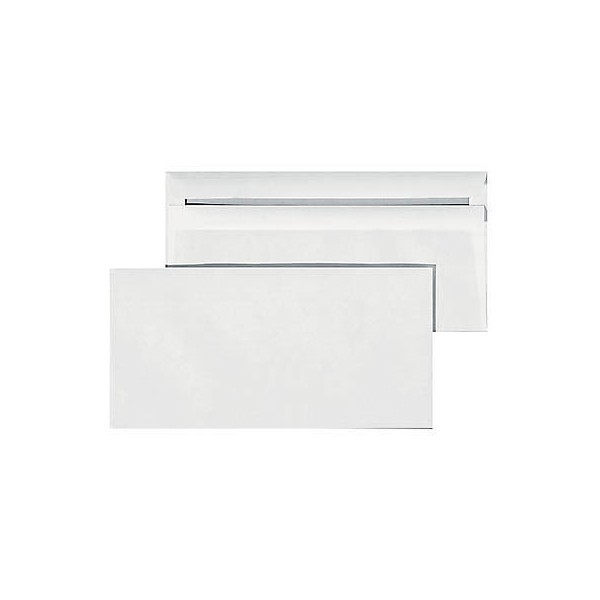 Selbstklebende Briefumschläge, chlorfrei gebleicht. Mit grauem Innendruck. Format: DIN lang. Maße: 22,0 x 11,0 cm. Papiergewicht: 75 g/qm. Ohne Fenster. Farbe: weiß.