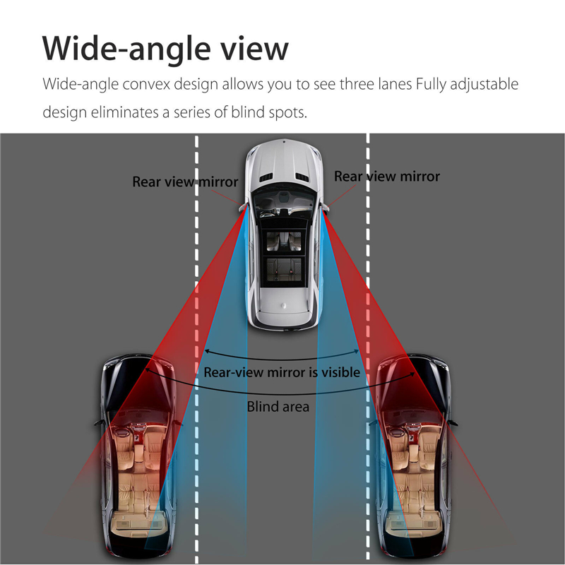 Suitable for installation on rearview mirrors and side mirrorsAdjustable 360 degrees adjustment, ideal fit for different driving position