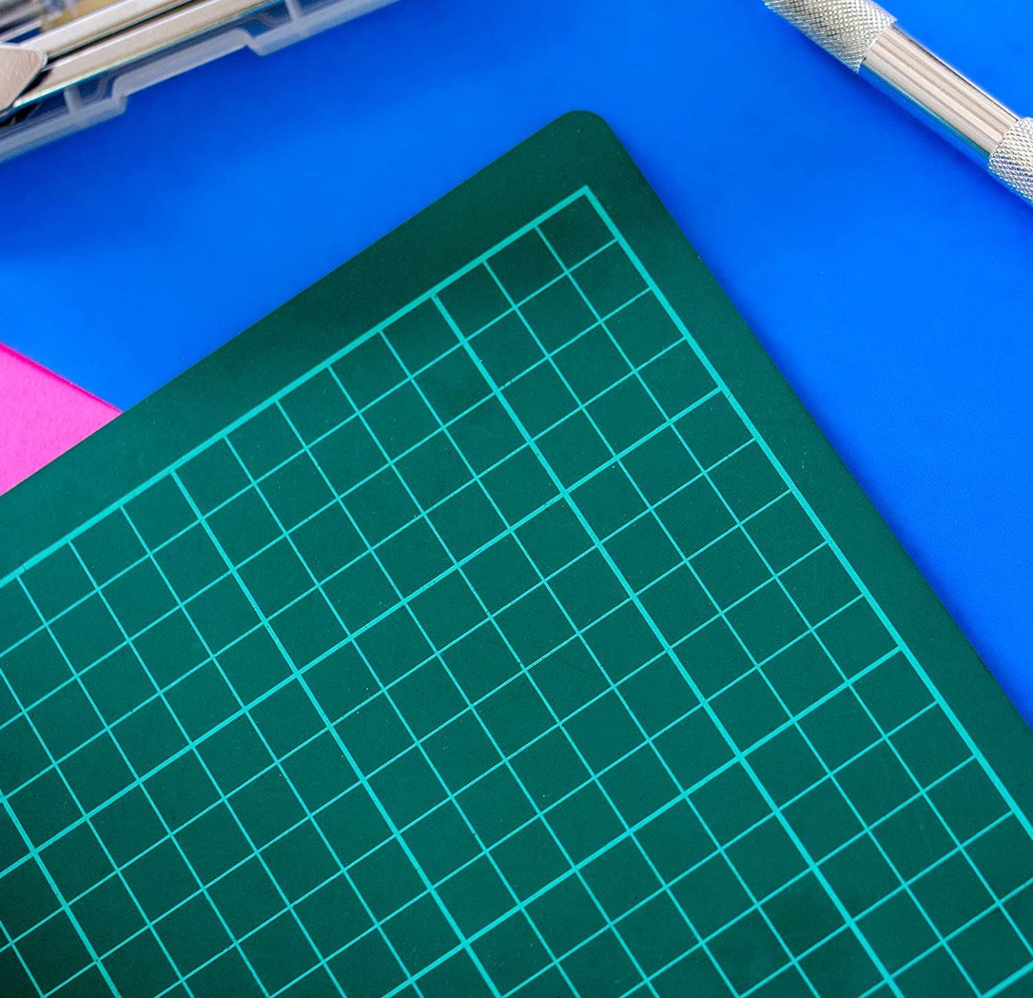 IDEAL SAFE CUTTING: This is the perfect product for those who do arts crafts as a hobby, or for use in a proper workshop environment, offering protection for surfaces and helping to cut clean NON-SLIP: Made with special materials to ensure that this will not slip on the surface you are using on top of. This is to give the ease of working and not worry about damaging other surface areas, when cutting the materials you need. Making precise cuts has never been easier! HIGH PRECISION – This is marked with clear grid guidelines to assist cutting, so as to ensure you are able to work as accurately as possible RESISTANT – Made to last the wear of constant cutting from any tool you use, with materials that will prevent you slicing all the way through and will self-restore surface cuts marks