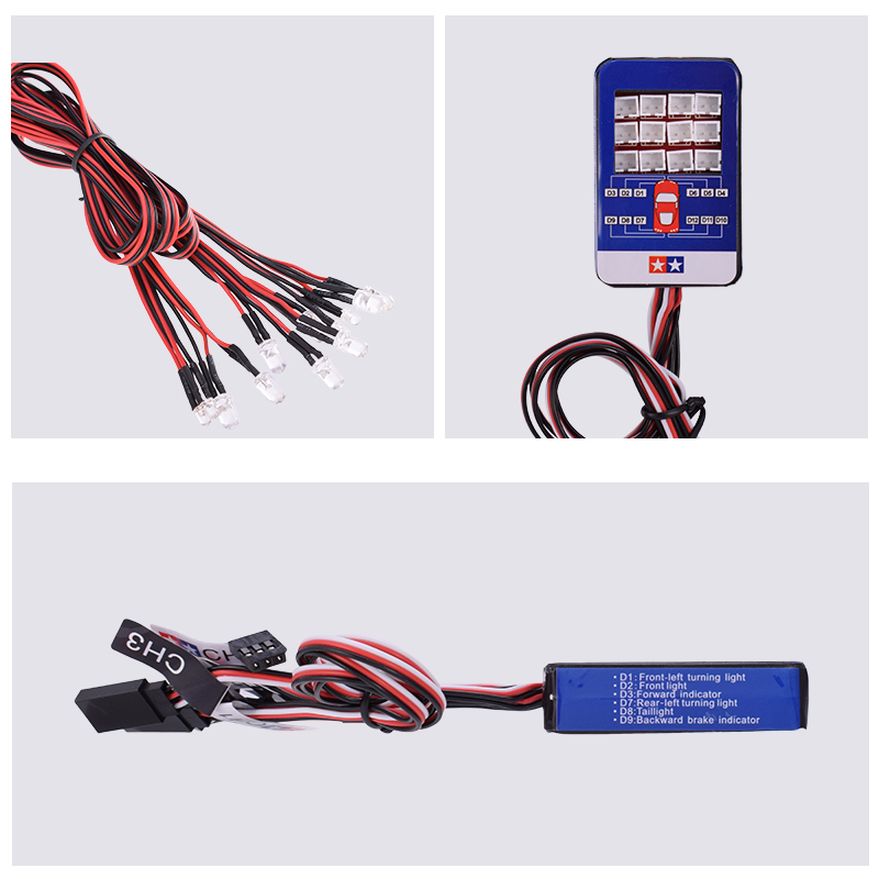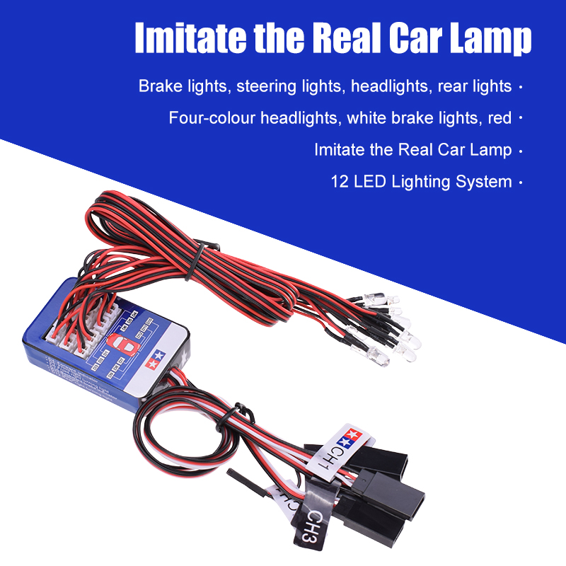 RC Lighting System 12 LED Steering Brake Smart Simulation Lights for 1/10 Tamiya Hop-up On Road RC Car Options Remote Control