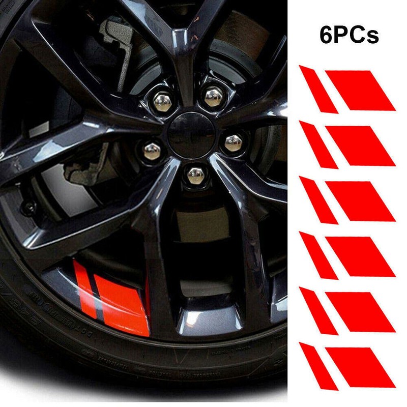 6x Red Reflective Car Accessories Car Wheel Rim Vinyl Decal Stickers For 16"-21"