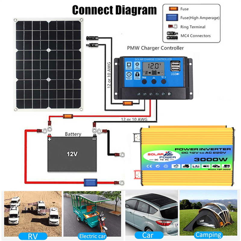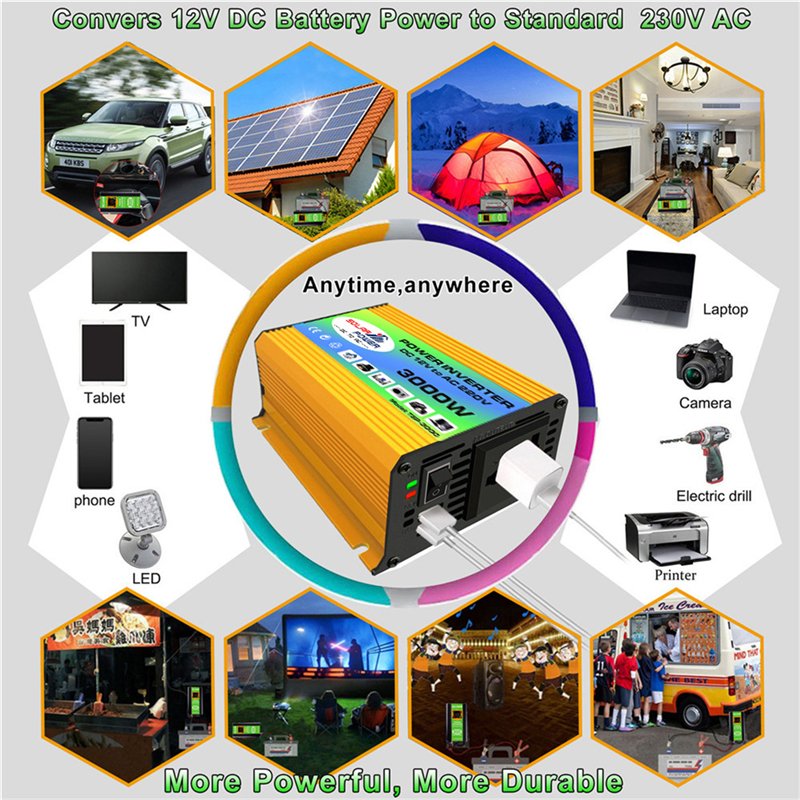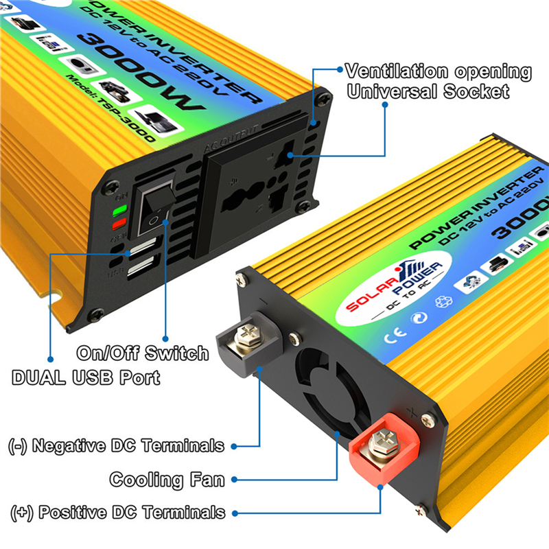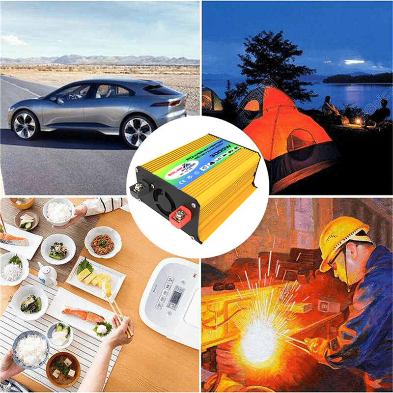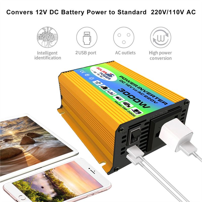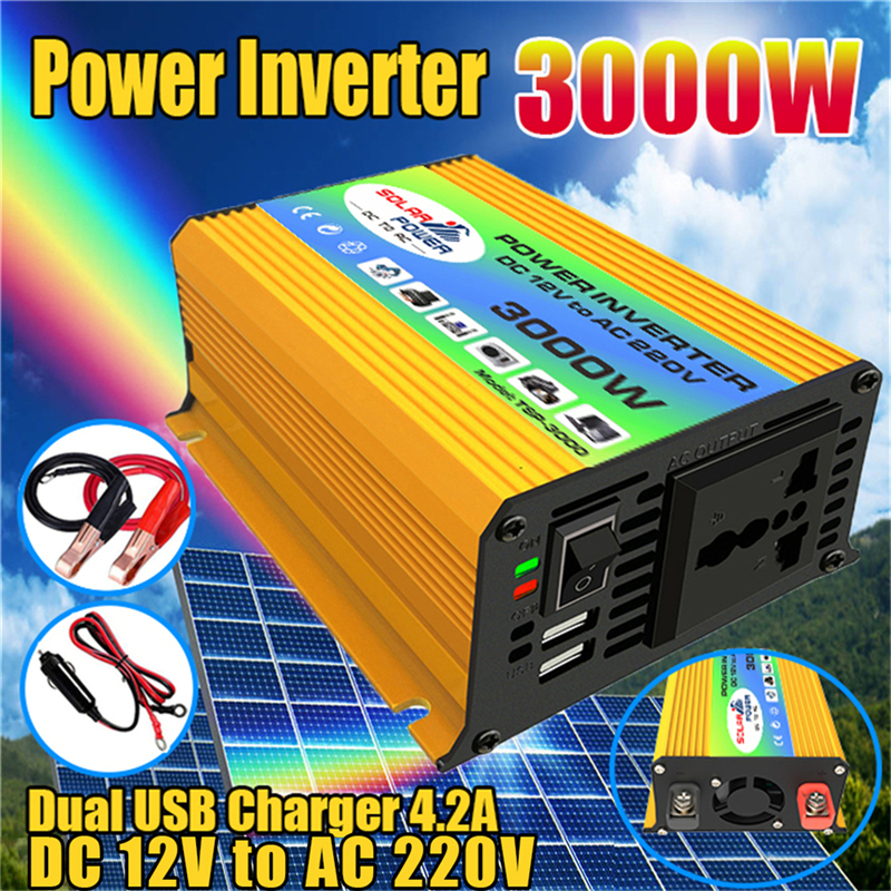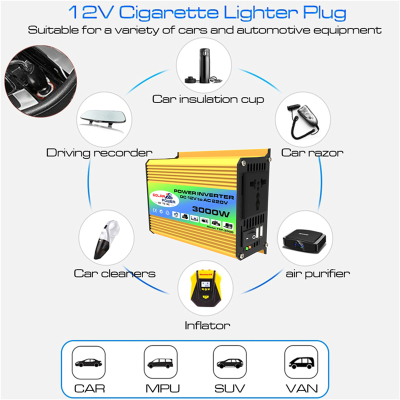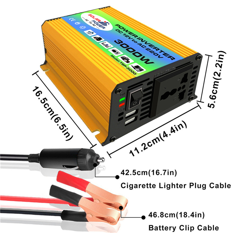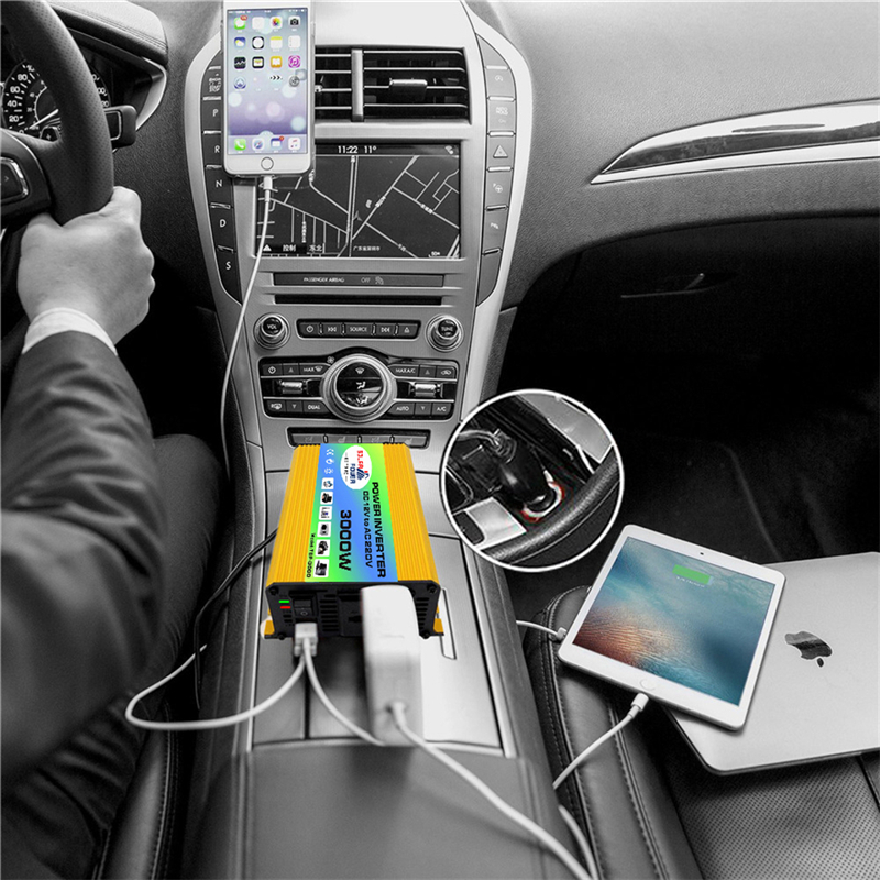 Car Power Inverter DC 12V to AC 110V 3000W Sine Wave USB Solar Converter Charger