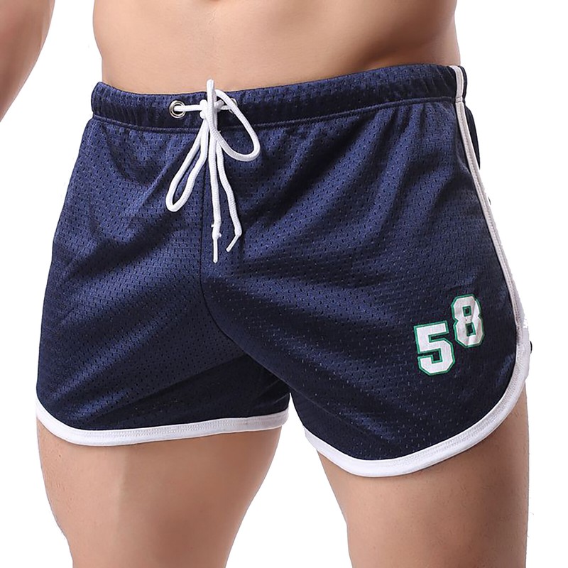 Men Summer Breathable Net Elastic Waistband with Drawstring Stretchy Track and Field Sports Bottoms.