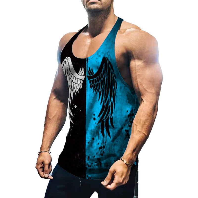 Mens Color Block Wings Print Tank Top Gym Fitness Muscle Vest.