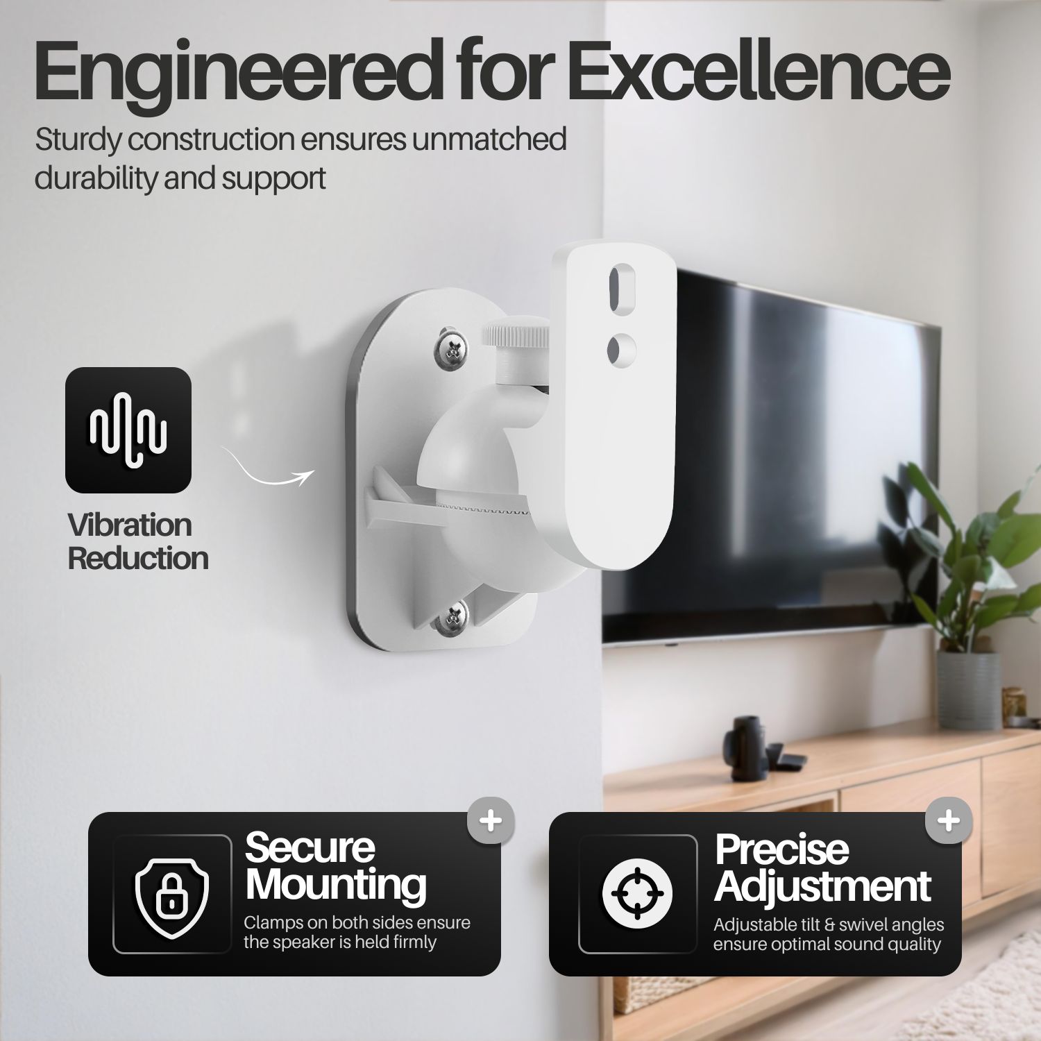 Do you own small or satellite speakers and would clamp them in your house wall? Now you got the right mounting clamp. The Universal Speaker Wall Mount is all you need, and your entire house will be lovely. It is a highly engineered wall clamp to give your speaker a perfect installation; it can support up to 11 pounds. Featuring an elegant designing, the clamp is ideal and won't compromise the decors of yours wall. When you are mounting your speaker, angles are important to consider. This is because inclination angle determines the quality of sound you will get. Now, with this speaker mount you don't have to worry, it is capable of allowing you maneuver your speakers to your required angle. It allows swiveling up to 90 degrees right or left. This ensures that you can turn it to suit your relaxing position. This is further supported by the capacity of the mount to tilt up and down at 20 degrees.Feature: