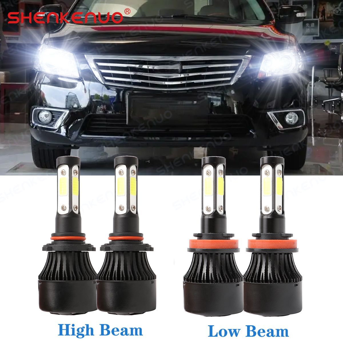 Para For Toyota Camry 2007-2017 4PC LED Faros delanteros Hi/Lo Kit de bombillas