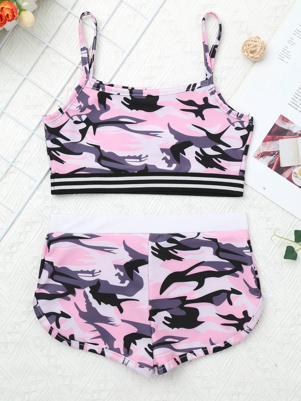 Set Include: 1Pc Girls Sport Tops, 1Pc Shorts