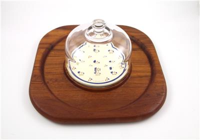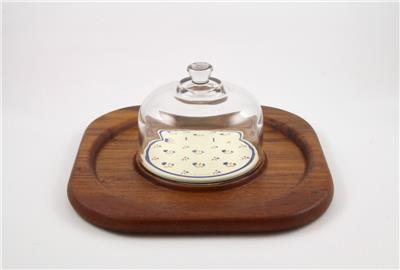 Vintage Goodwood teak cheese & cracker tray with a glass domed lid