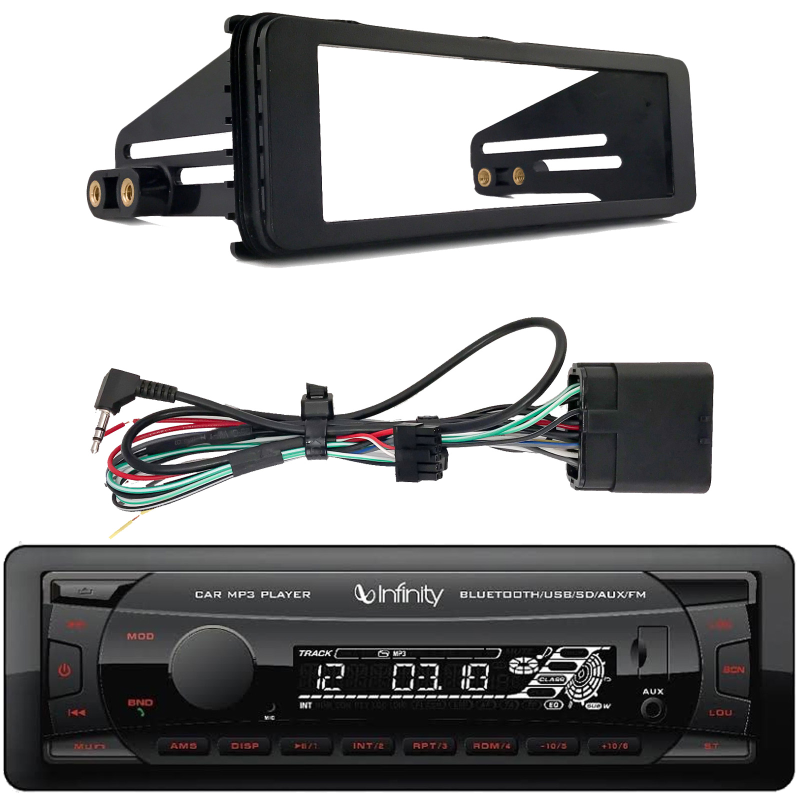 • PACKAGE BUNDLE INCLUDES: Infinity Alpha 100 Single DIN Bluetooth USB/AUX SD MP3 Player FM Radio Digital Media Receiver, Single-DIN Stereo Installation Kit Fits 1998-2013 Harley Davidson Motorcycles Models, HD Touring