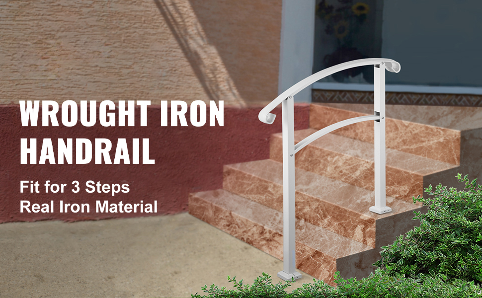 Our outdoor stair railing for concrete provides extra protection for the elderly, children, and disabled struggling to use stairs. The flexible height allows the exterior handrail for steps to fit 3 stairs, meeting your different needs. With sturdy wrought iron material and powder-coated surface, the railing is rustproof and easy to clean. This metal handrail for outdoor steps is ideal for gardens, residential buildings, porches, hotels, etc.