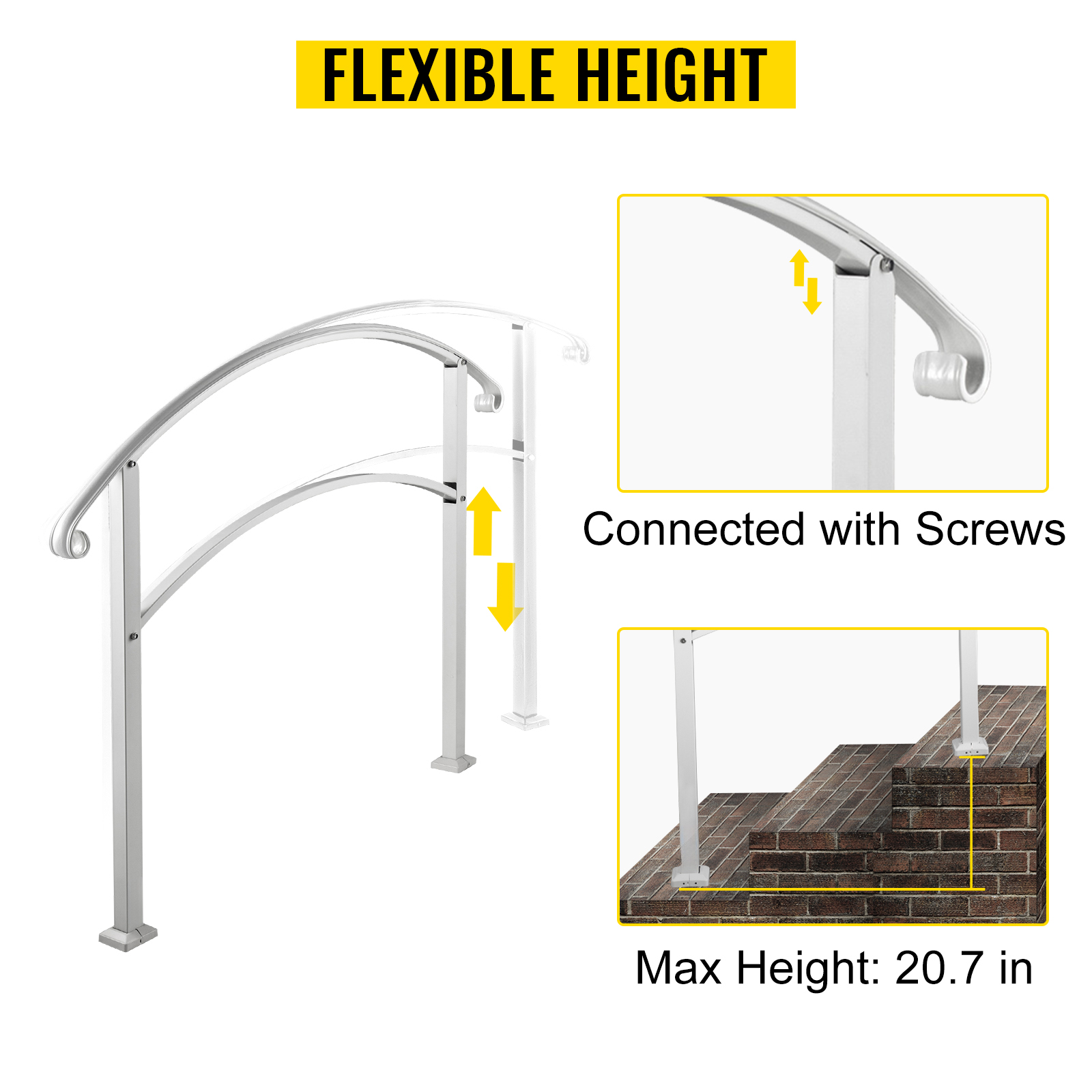 With screws connection, this outdoor stair railing is height changeable to suit steps of different sizes. The max height for stairs is 20.7"/52.5 cm, flexible to meet your various needs.