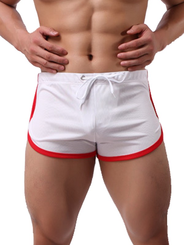 Mens Contrast Color Trim Sport Shorts Low Rise Drawstring Short Pants Swim Trunks.
