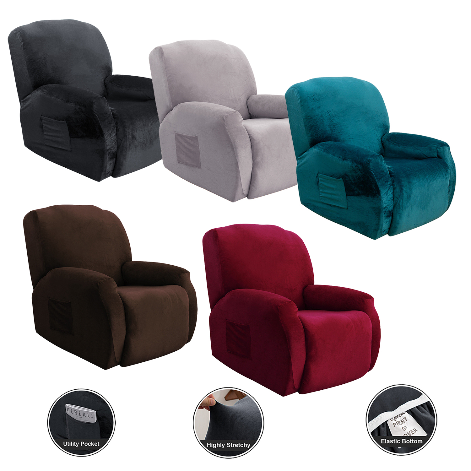 【High Quality Velvet Fabric】Our recliner cover is made of velvet fabric, which is soft and comfortable with great elasticity. Wrinkle and tear resistant polyester fabric. The recliner cover is made of thick elastic that covers the bottom edge well, providing full protection against slipping.
