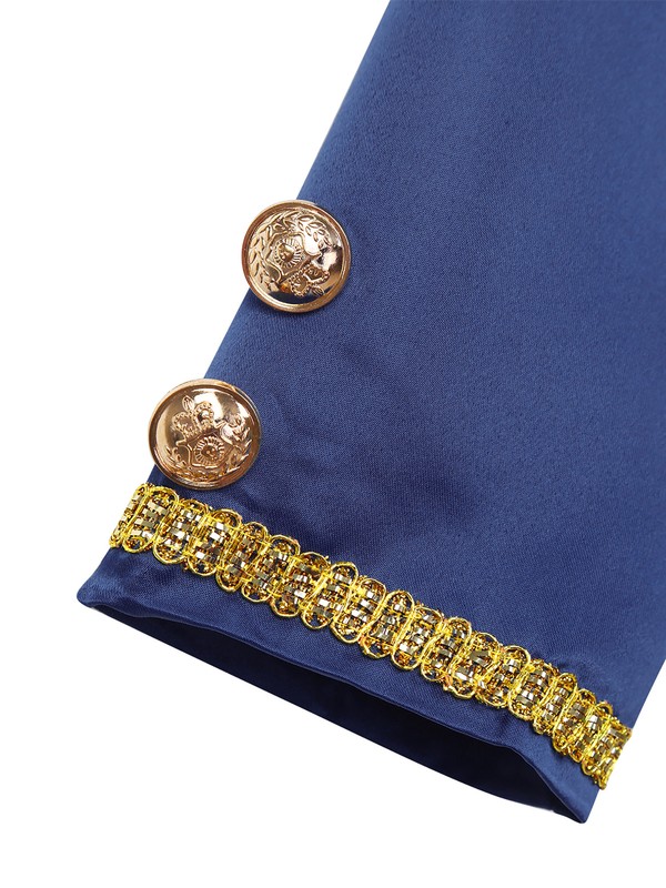 Gold braided trimmings embellish the wrists and around the tails. Fully lined. Handsome prince costume for your boy.