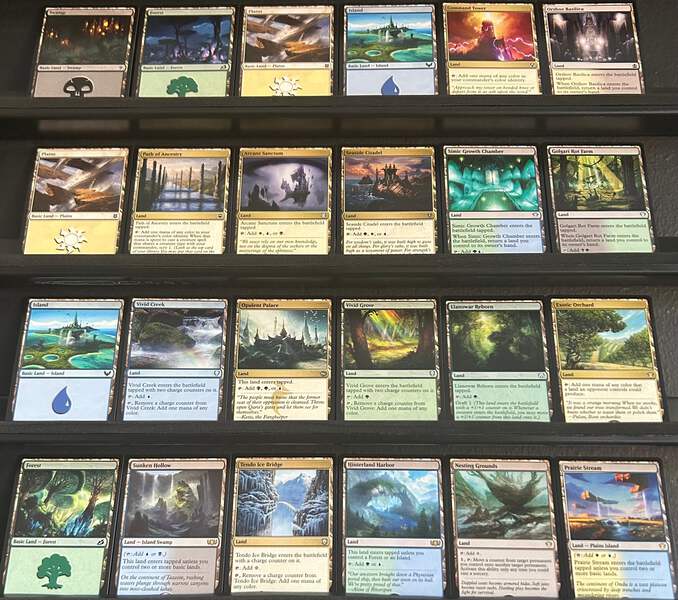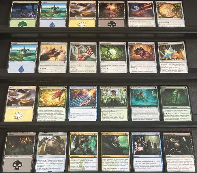 Fixing and acceleration from Arcane Signet, Selesnya Signet, and Moss Diamond for reliable mana every turn