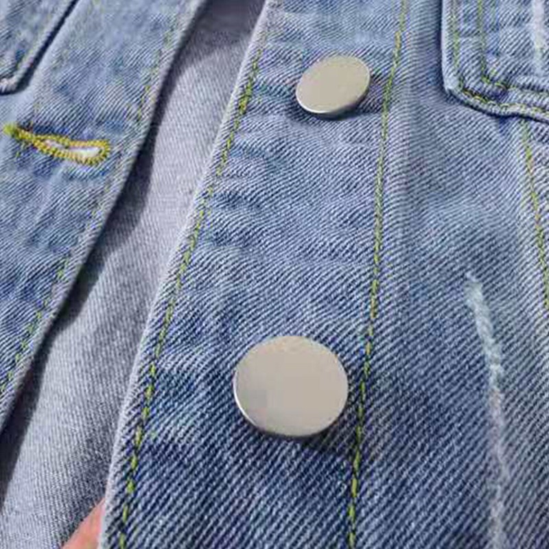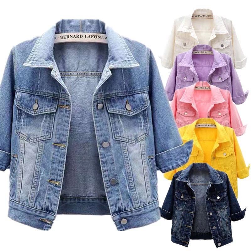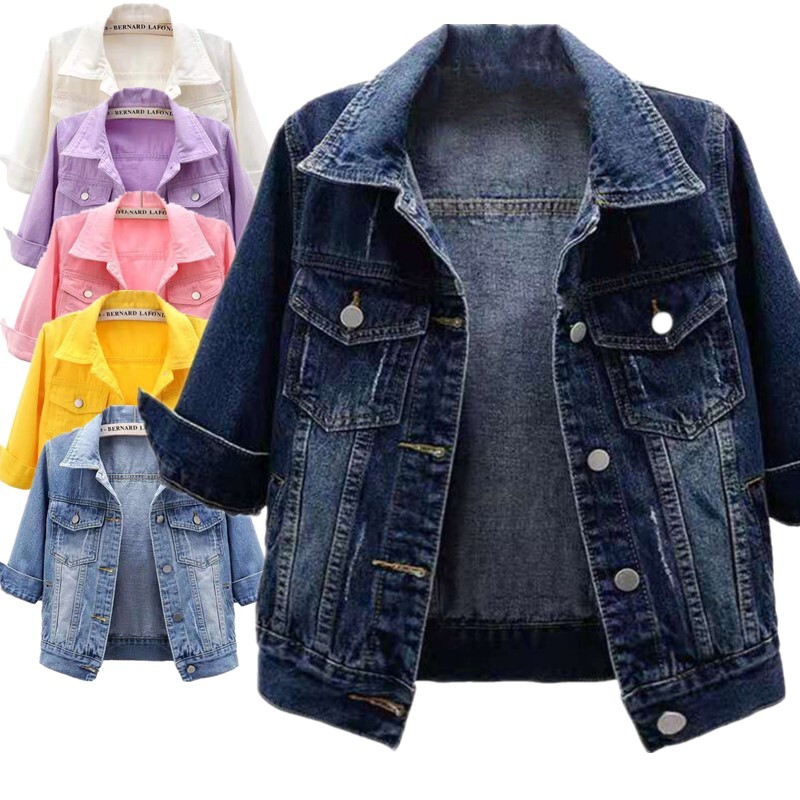 Womens 3/4 Sleeve Denim Jacket Casual Turn-Down Collar Button Jean Jackets Coat with Pockets.