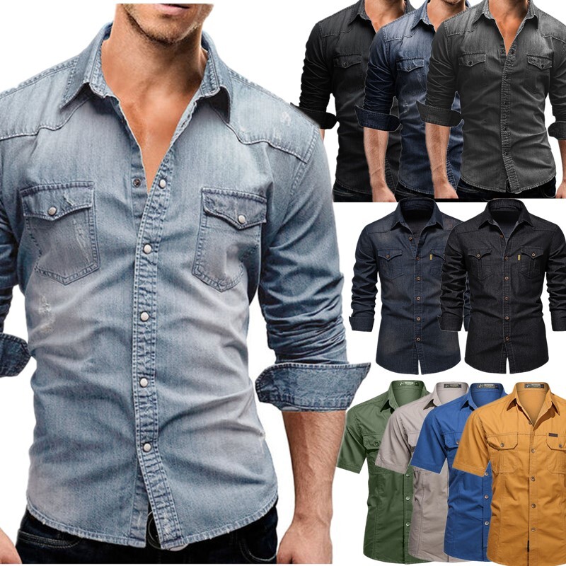Casual denim jacket features 3/4 sleeve, turn-down collar, button closure, regular fit.