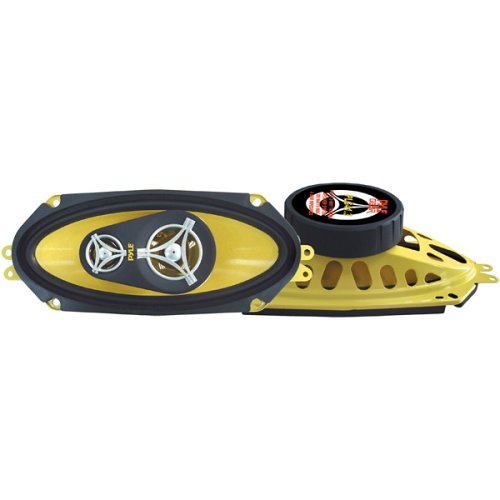 Get in gear with the Pyle Gear series! These speakers are designed to provide the best quality sound for the budget-minded enthusiast. These 4� x 10�, three-way speakers have 300 watts of pure power, supported by a 0.5� neodymium dome tweeter for sweet highs, a 2� polymer cone for mids, and a high temperature voice coil to round out the low end. The non-fatiguing butyl rubber surround and yellow-color poly-injected cone provide a sturdy foundation for keeping your sound crystal clear and distortion-free. The 45 oz. magnet structure allows these speakers to achieve a frequency response of 60 Hz to 22 kHz. To boost performance, these speakers have been equipped with a strong capacitor, meaning your speakers will never struggle for power. These speakers look cool, too, thanks to the yellow coated steel basket. Includes custom grills, wires, and installation hardware. You�ll hear everything you were meant to hear with Pyle Gear.